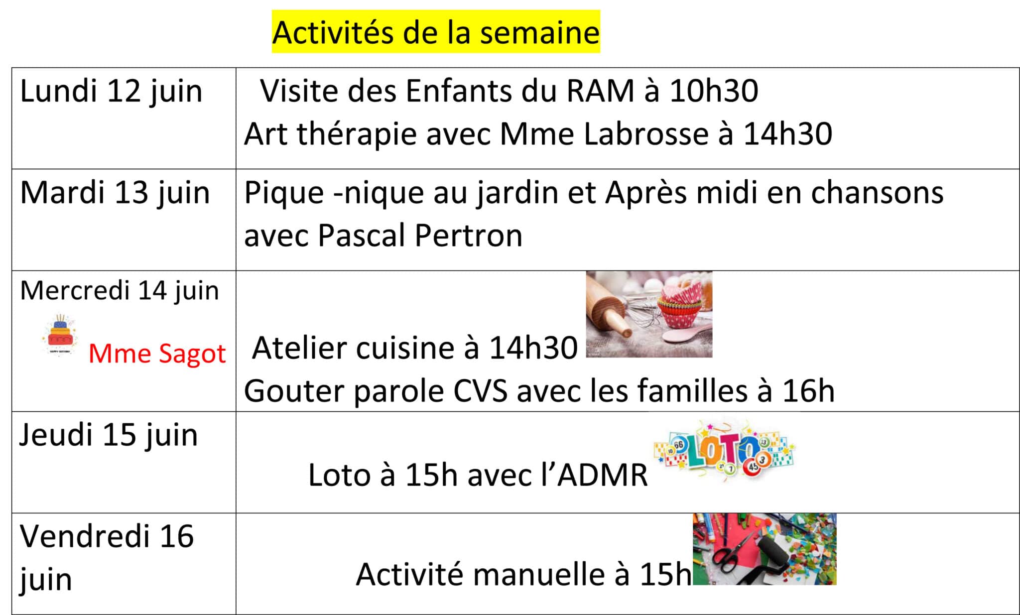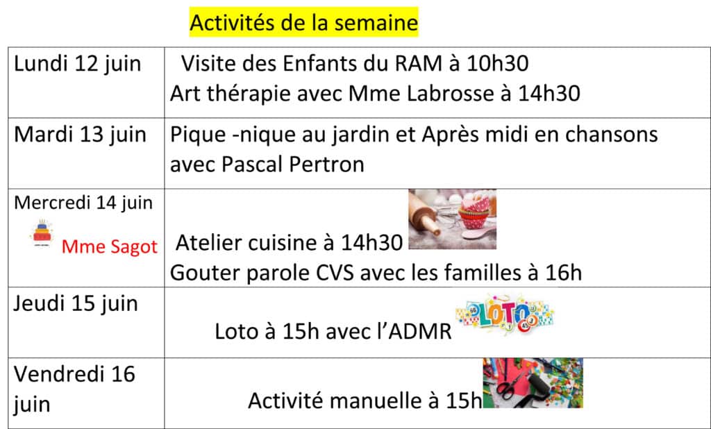 Activités de la semaine 12au 16 juin-1 | Activités de la semaine 12au 16 juin-1